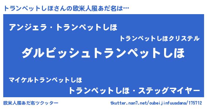 | 胡散臭い通販商品みたいなあだ名 | 『来世でも幸せになれる水素水…その名も「トランペットしほ」』 |