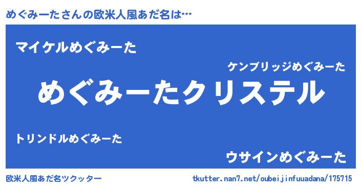 | 意味不明あだ名 | 『めぐみーたフォーエバー』 |