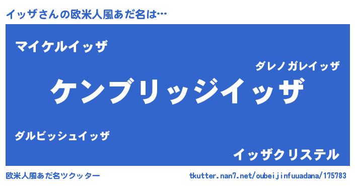 | 男性向けラノベタイトル風あだ名 | 『Re:イッザから始める異世界生活』 |
