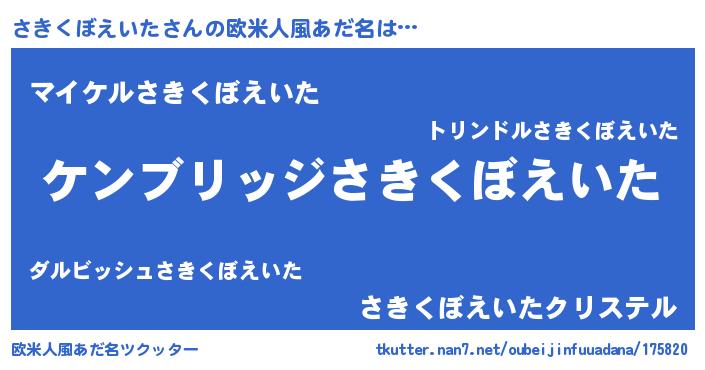 | 意味不明あだ名 | 『自称さきくぼえいた』 |