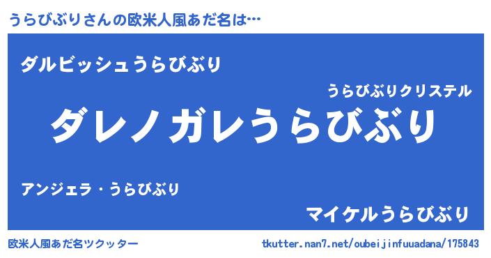 | 男性向けラノベタイトル風あだ名 | 『この素晴らしい世界にうらびぶりを!』 |