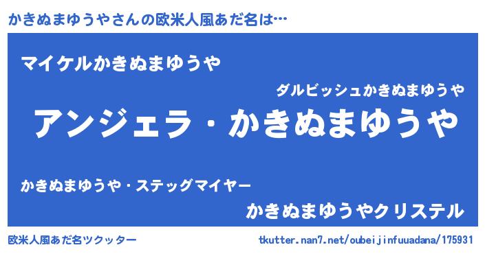 | 男性向けラノベタイトル風あだ名 | 『かきぬまゆうやに滅ぼされるだけの簡単なお仕事です』 |