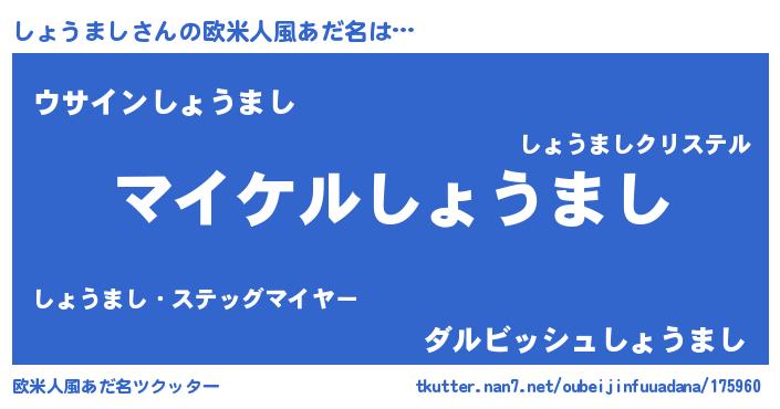 | 男性向けラノベタイトル風あだ名 | 『しょうましの憂鬱』 |