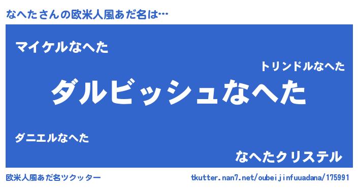 | ヘコむあだ名 | 『なへた(小並感)』『なへにー』 |