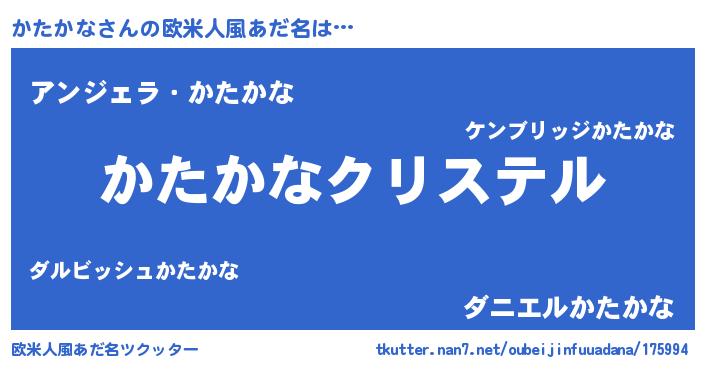 | 女子向けラノベタイトル風あだ名 | 『かたかな伯爵の花嫁』『かたかな恋絵巻』 |
