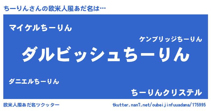 | 男性向けラノベタイトル風あだ名 | 『ちーりんという概念が存在しない退屈な世界 』 |