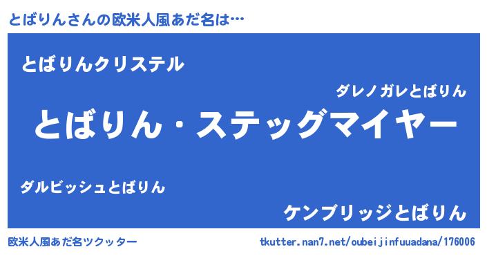 | 意味不明あだ名 | 『とばりんフォーエバー』『自称とばりん』 |