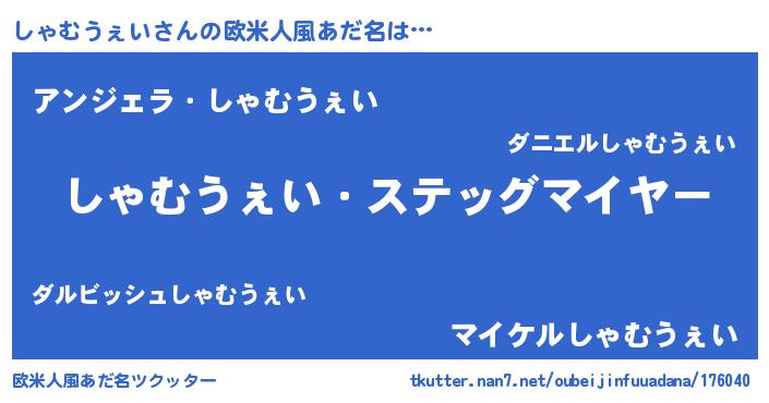| 男性向けラノベタイトル風あだ名 | 『冴えないしゃむうぇいの育てかた』 |