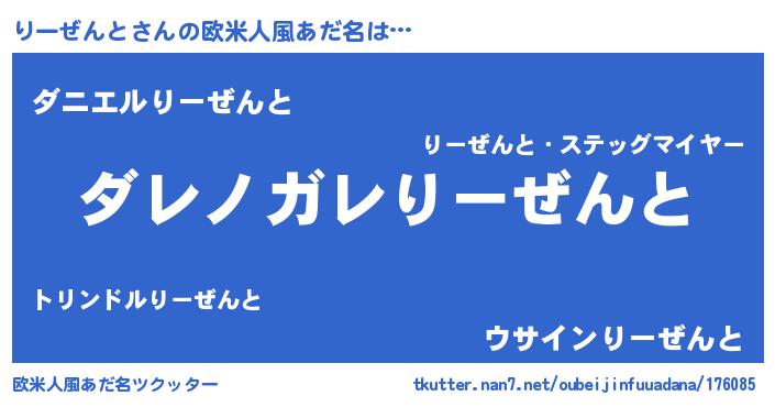 | 男性向けラノベタイトル風あだ名 | 『この素晴らしい世界にりーぜんとを!』 |