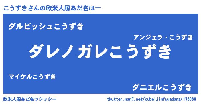 | 男性向けラノベタイトル風あだ名 | 『この素晴らしい世界にこうずきを!』 |