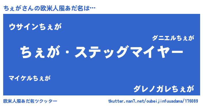 | 男性向けラノベタイトル風あだ名 | 『うちのちぇがが世界を掌握している!』 |
