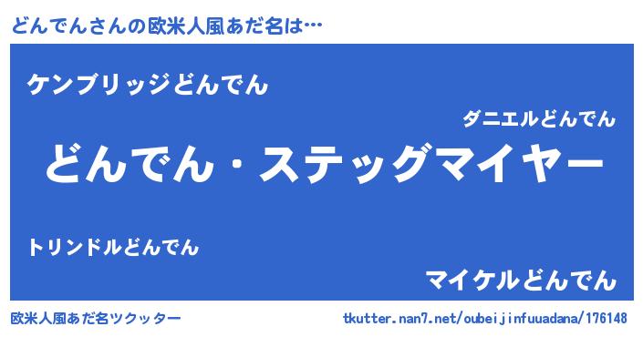 | 男性向けラノベタイトル風あだ名 | 『うちのどんでんが世界を掌握している!』 |