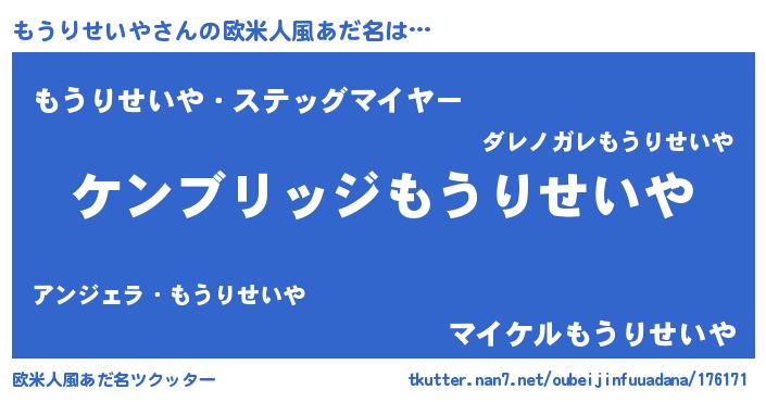 | 男性向けラノベタイトル風あだ名 | 『魔法科高校のもうりせいや』 |
