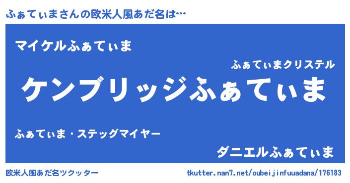 | 男性向けラノベタイトル風あだ名 | 『Re:ふぁてぃまから始める異世界生活』 |