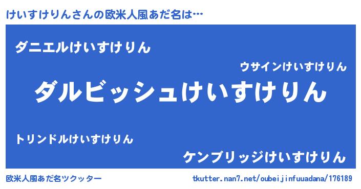 | 女子向けラノベタイトル風あだ名 | 『けいすけりんの契約王妃』 |