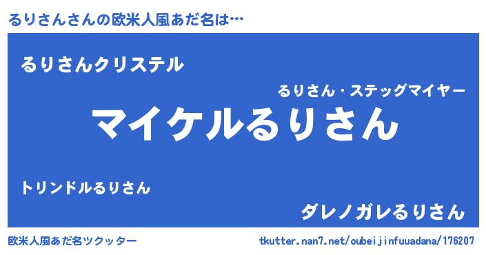 | 男性向けラノベタイトル風あだ名 | 『ルリサンアートオンライン』 |