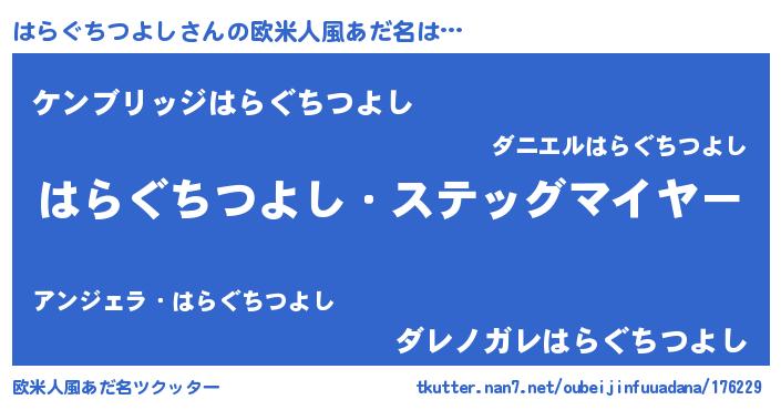 | 意味不明あだ名 | 『自称はらぐちつよし』 |
