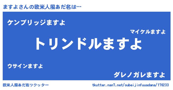 | 女子向けラノベタイトル風あだ名 | 『ますよの玉の輿計画!』『闇のますよ』 |