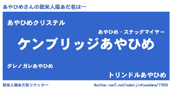 | 男性向けラノベタイトル風あだ名 | 『Re:あやひめから始める異世界生活』 |