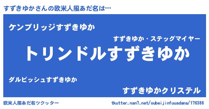 | 男性向けラノベタイトル風あだ名 | 『スズキユカスレイヤー』 |