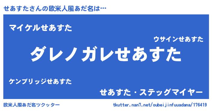 | 意味不明あだ名 | 『住所不定無職せあすた(89歳)』 |