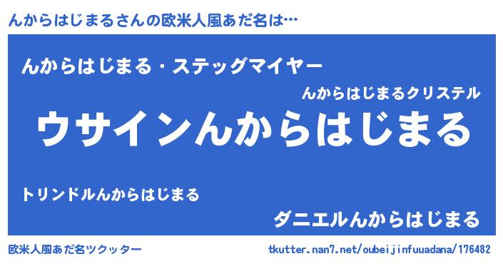 | 男性向けラノベタイトル風あだ名 | 『んからはじまるの嫁は女の子じゃないと思った?』 |