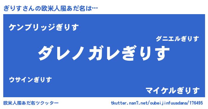 | 意味不明あだ名 | 『住所不定無職ぎりす(81歳)』『自称ぎりす』 |