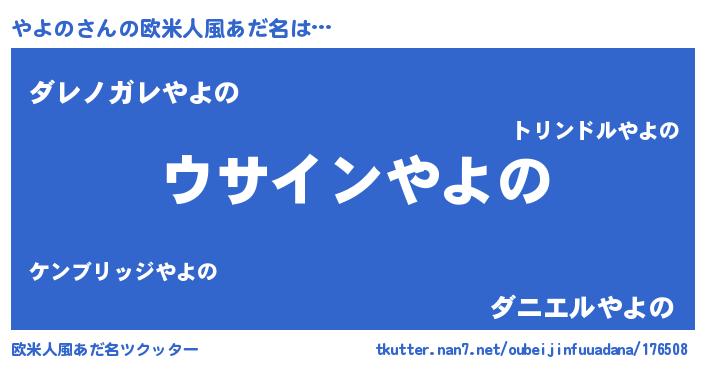 | 女子向けラノベタイトル風あだ名 | 『やよのの卵を拾いまして』 |