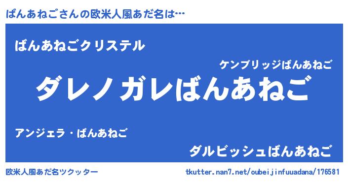 | 意味不明あだ名 | 『住所不定無職ばんあねご(12歳)』 |