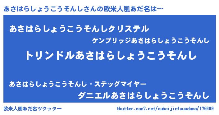 男性向けラノベタイトル風あだ名 | 『転生したらあさはらしょうこうそんしだった件』 |