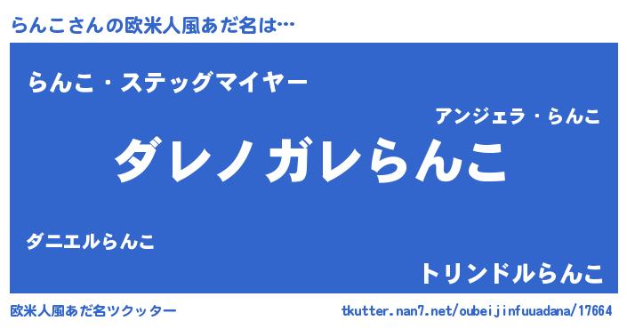 | 男性向けラノベタイトル風あだ名 | 『魔弾の王とらんこ』『緋弾のランコ』 |