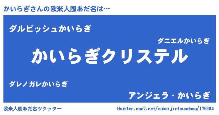 | 女子向けラノベタイトル風あだ名 | 『かいらぎ伯爵の花嫁』『かいらぎ恋絵巻』 |