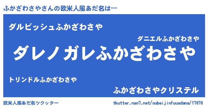 | ヒーロー風カッコイイあだ名 | 『仮面フカダー』『ネオフカザワサヤ』 |