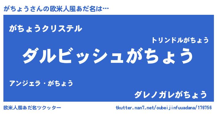 | 男性向けラノベタイトル風あだ名 | 『がちょうという概念が存在しない退屈な世界 』 |