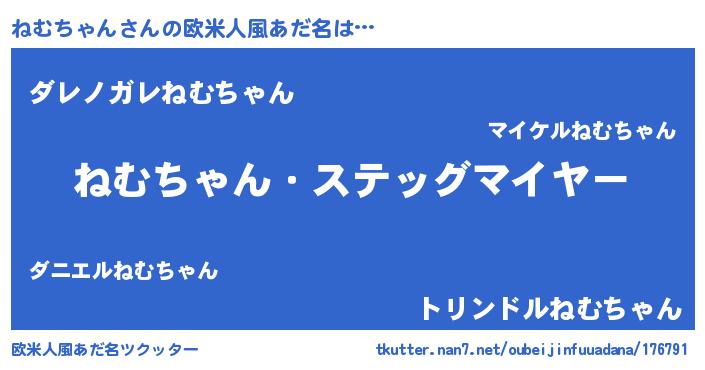 | ピコ太郎風あだ名 | 『ネコ四郎』『ネネ太郎』『ネム次郎』 |