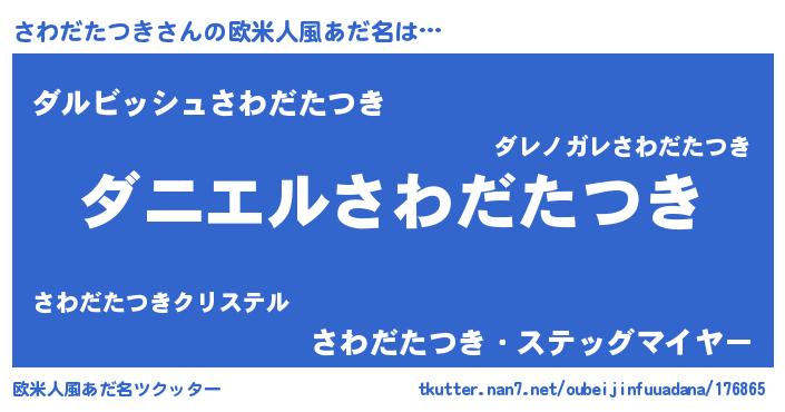 | 男性向けラノベタイトル風あだ名 | 『おまえをオタクにしてやるから、俺をさわだたつきにしてくれ! 』 |