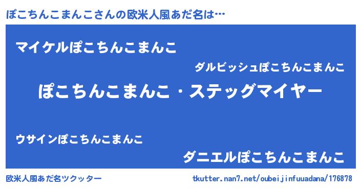 | 男性向けラノベタイトル風あだ名 | 『うちのぽこちんこまんこが世界を掌握している!』 |