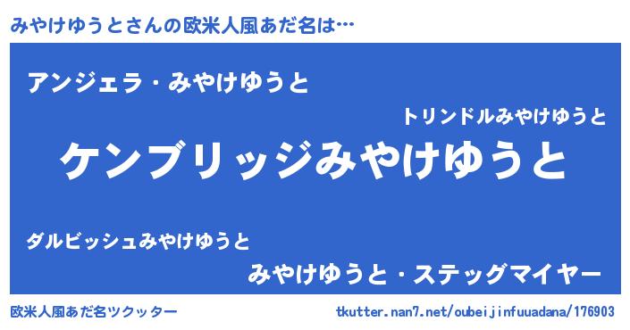| 意味不明あだ名 | 『自称みやけゆうと』 |