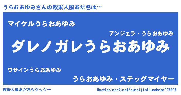 | 恥ずかしいあだ名 | 『プリティーうらおあゆみ』『うらちん』 |