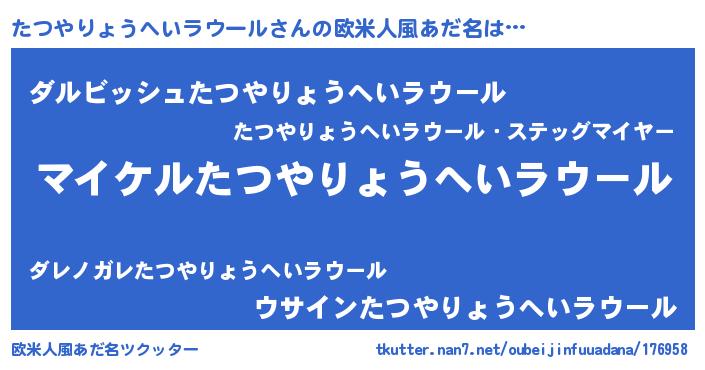 | 男性向けラノベタイトル風あだ名 | 『たつやりょうへいラウールの憂鬱』 |