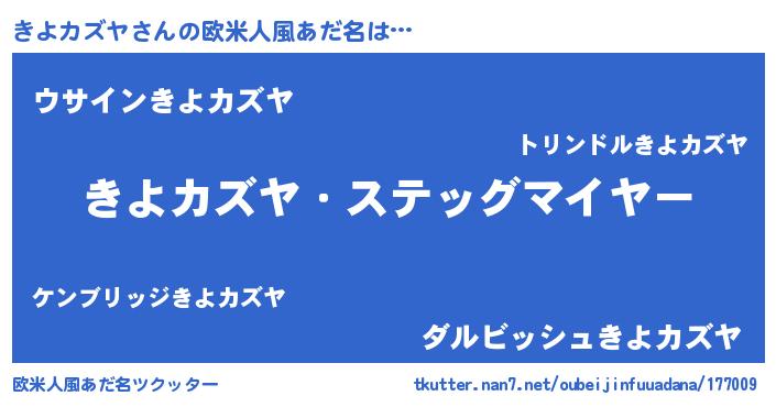 | 男性向けラノベタイトル風あだ名 | 『うちのきよカズヤが世界を掌握している!』 |