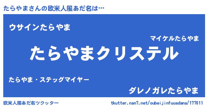 | ファンタジー風あだ名 | 『エターナルタラヤマー』『タラフェル』 |