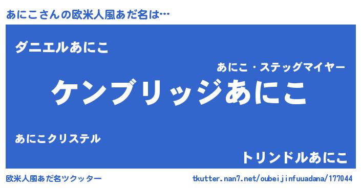 | 男性向けラノベタイトル風あだ名 | 『Re:あにこから始める異世界生活』 |