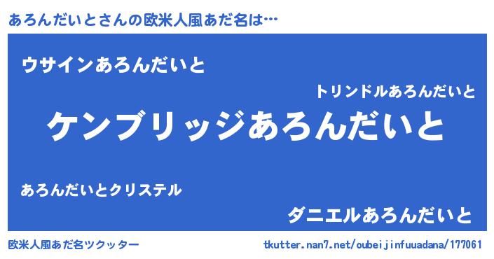 | 意味不明あだ名 | 『自称あろんだいと』 |