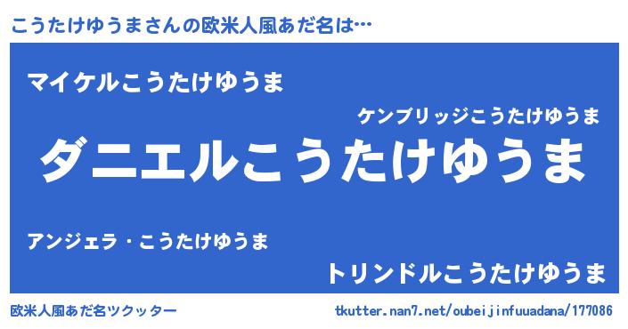 | 男性向けラノベタイトル風あだ名 | 『ノーゲーム・ノーコウタケユウマ』 |