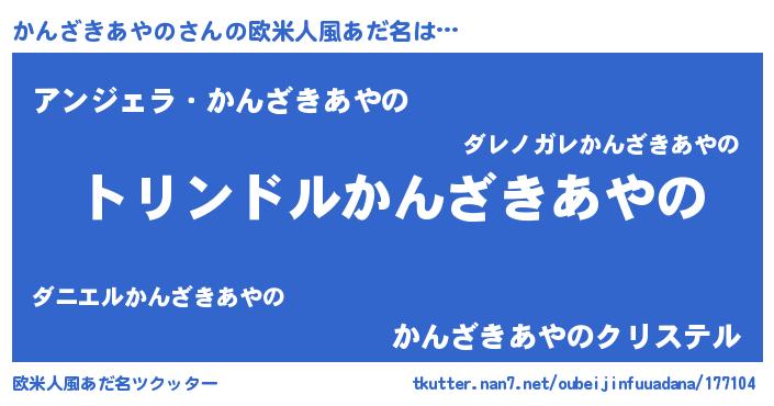 | 男性向けラノベタイトル風あだ名 | 『かんざきあやの~年齢イコール彼女いない歴の魔法使い~』 |