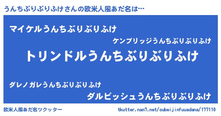 | 男性向けラノベタイトル風あだ名 | 『転生したらうんちぶりぶりふけだった件』 |