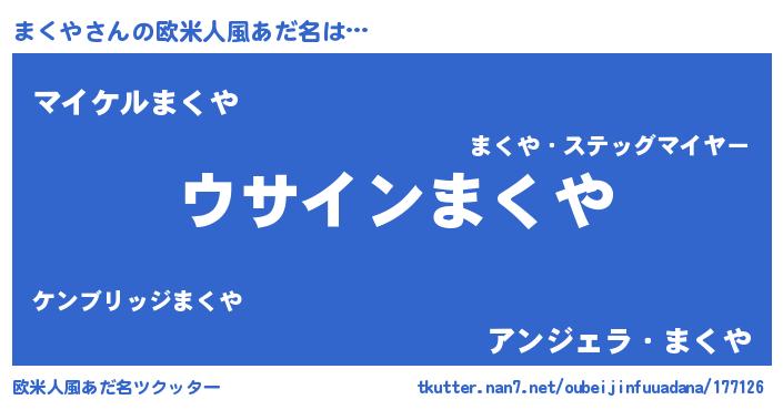 | ピコ太郎風あだ名 | 『マク二郎』『マコ一郎』『ママ太郎』 |