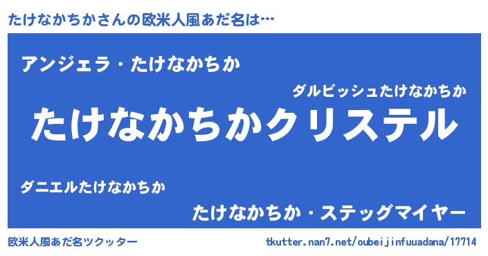 | 男性向けラノベタイトル風あだ名 | 『やはりたけなかちかの青春ラブコメはまちがっている 』 |