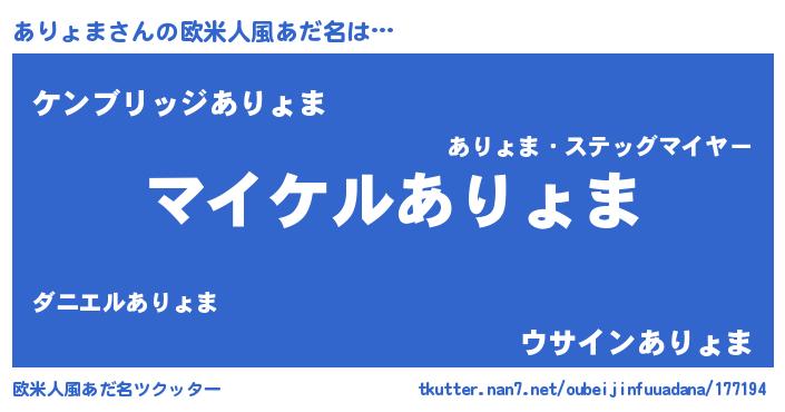 | ヘコむあだ名 | 『ありにゅー』『ありお』『つくし』 |